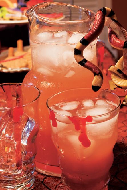 Pomegranate juice adds ghoulish appeal to this pitcher-perfect Witch's Potion made with lemonade, lemon-lime soda, and red decorating gel. Get the recipe for Witch's Potion.